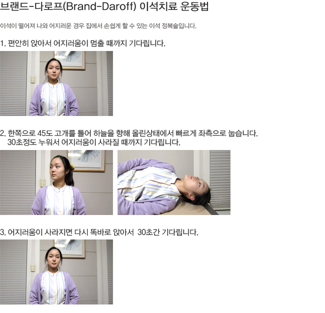 ºê·£µå-´Ù·ÎÇÁ À̼®Ä¡·á ¿îµ¿¹ý-(1)Æí¾ÈÈ÷ ¾É¾Æ¼­ ¾îÁö·¯¿òÀÌ ¸ØÃâ¶§±îÁö ±â´Ù¸³´Ï´Ù. (2)ÇÑÂÊÀ¸·Î 45µµ °í°³¸¦ Ʋ¾î ÇÏ´ÃÀ» ÇâÇØ ¿Ã¸° »óÅ¿¡¼­ ºü¸£°Ô ÁÂÃøÀ¸·Î ´¯½À´Ï´Ù. 30ÃÊÁ¤µµ ´©¿ö¼­ ¾îÁö·¯¿òÀÌ »ç¶óÁú¶§±îÁö ±â´Ù¸³´Ï´Ù. (3)¾îÁö·¯¿òÀÌ »ç¶óÁö¸é ´Ù½Ã ¶È¹Ù·Î ¾É¾Æ¼­ 30Ãʰ£ ±â´Ù¸³´Ï´Ù. (4)¹Ý´ë¹æÇâÀ¸·Î 45µµ °í°³¸¦ Ʋ¾î¼­ ÇÏ´ÃÀ» ÇâÇØ ¿Ã¸° »óÅ¿¡¼­ ºü¸£°Ô ¿ìÃøÀ¸·Î ´¯½À´Ï´Ù. 30ÃÊÁ¤µµ ´©¿ö¼­ ¾îÁö·¯¿òÀÌ »ç¶óÁú¶§±îÁö ±â´Ù¸³´Ï´Ù. (5)¾îÁö·¯¿òÀÌ »ç¶óÁö¸é ´Ù½Ã Á¦ÀÚ¸®¿¡ ¾É¾Æ¼­ ½±´Ï´Ù.  ÇÏ·ç¿¡ ¼¼¹ø ½ÃÇàÇϸç Çѹø¿¡ 10ȸ Á¤µµ ÀÌ ¿îµ¿À» ¹Ýº¹ÇÕ´Ï´Ù. 2ÀÏÁ¤µµ °è¼ÓÇÏ°í ¾îÁö·³ÁõÀÌ »ý±âÁö ¾Ê´Â´Ù¸é À̼®ÀÌ Á¦ÀÚ¸®¸¦ ãÀº °ÍÀ¸·Î º¸°í ¿îµ¿À» ÁßÁöÇØµµ µË´Ï´Ù.